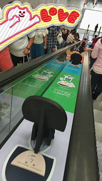 第一眼見到這個手扶梯廣告就覺得很特別,因為它有做立體的耶,滿少見的,所以今天特別走一遭去拍個紀念照,然後我忘記拍它的背面了,可惡。