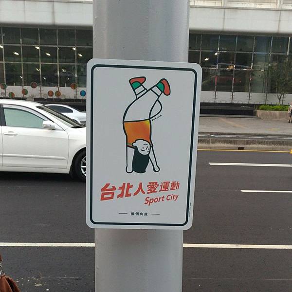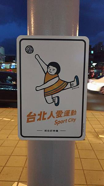 某日等公車時,在電線桿看到的,看到的第一個想法是,「喔!應該是要配合世大運吧。」但我認真的研究了這個牌子,它什麼單位活動都沒有寫耶,所以揪竟這是什麼東東咧?還是其實這個一個催眠的牌子,路人看久了就被洗腦了,真的都以為自己是愛運動的?!(顯示為電影看太多)