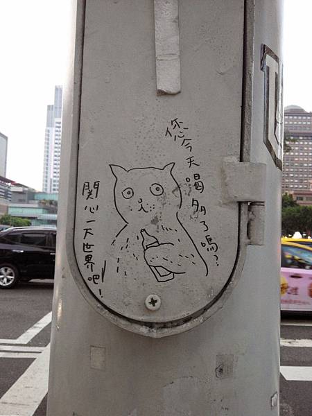 這是很久之前在信義區看到的塗鴉,覺得真是發人深省,比「上帝近了」還叫人振奮!拍照的所在地處於夜店聚集地,所以看到這個塗鴉,不禁讓人會心一笑。