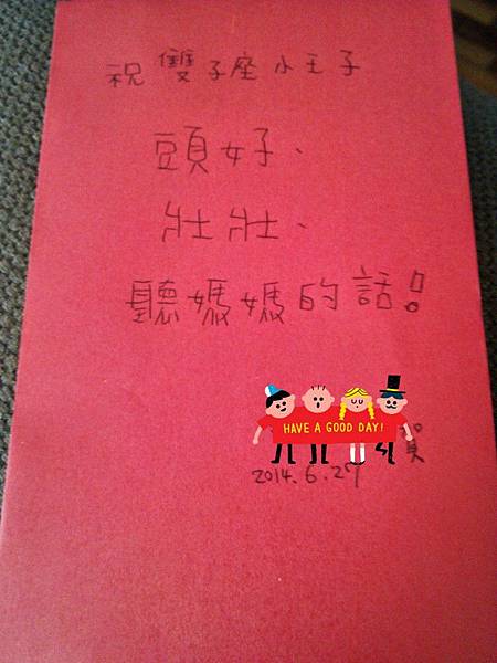 我開始自由發揮是從這個紅包袋開始的,因為弄璋弄瓦什麼的,我搞不太清楚,最後決定發落自己的heart,寫些真心祝福的話語。(這樣好像說以前的祝福不真心,不是這樣說的啦!)