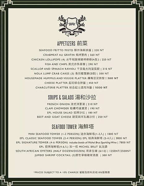 EPL Steakhouse &Lounge海鮮塔蝦蝦龍蝦華麗登場(附菜單)